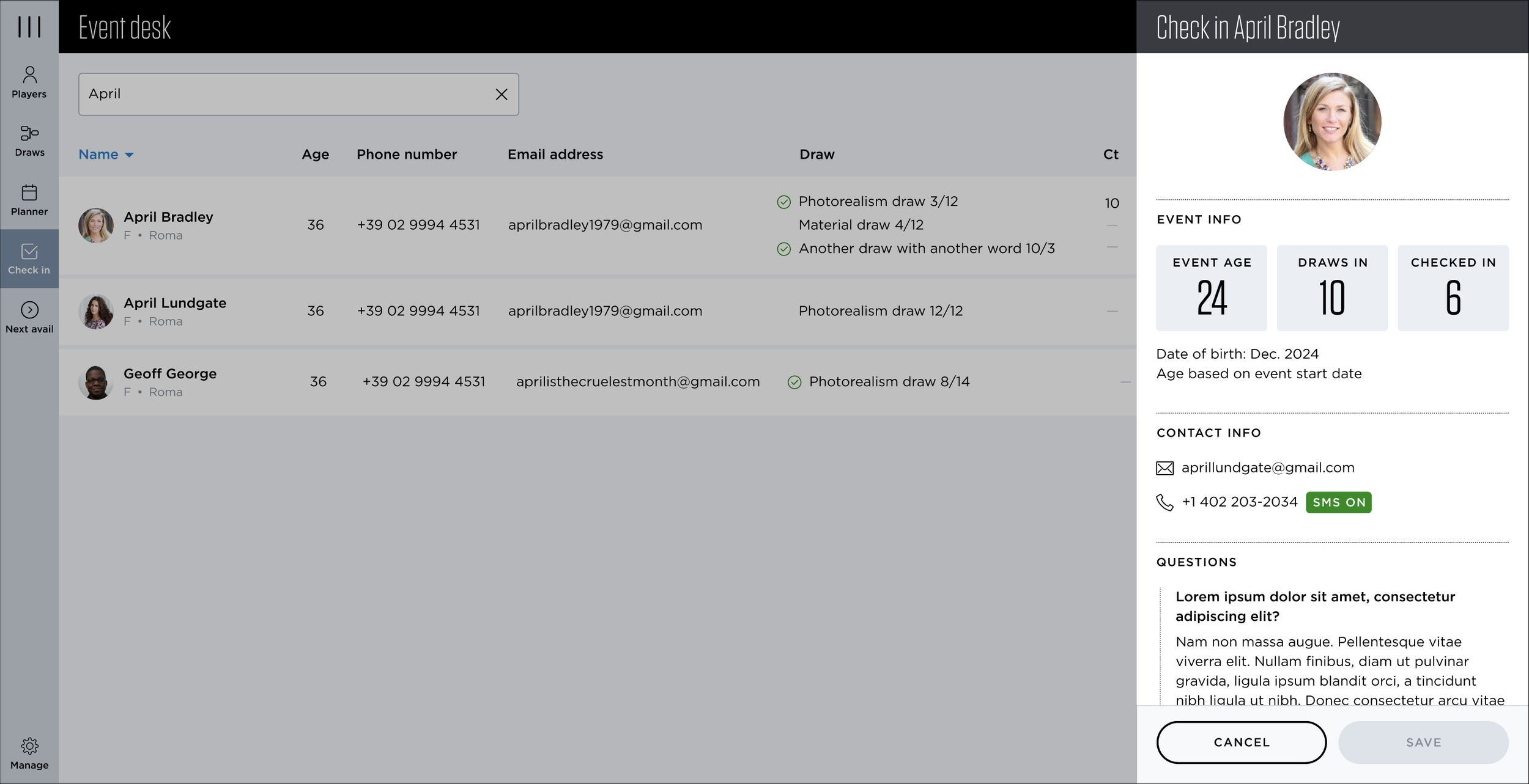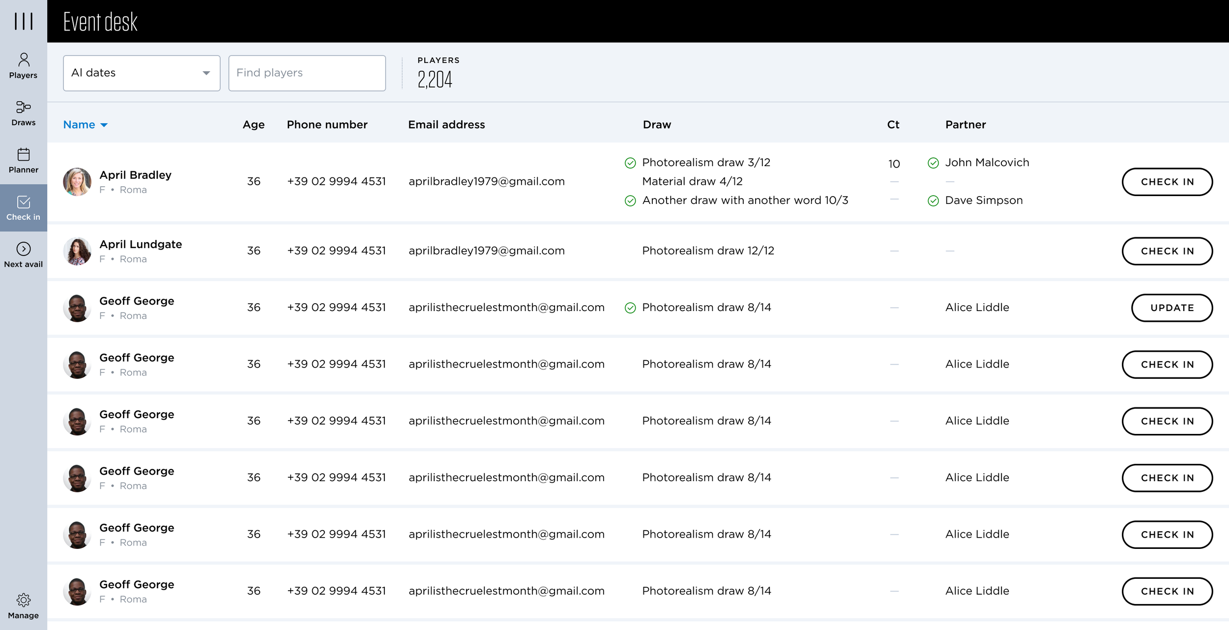 Setting up the Event desk (which is what we came to call it) had its own set of challenges, as we had to account for different scoring formats and game types in order to be able to accurately report back to the main platform and to the players at each tournament.