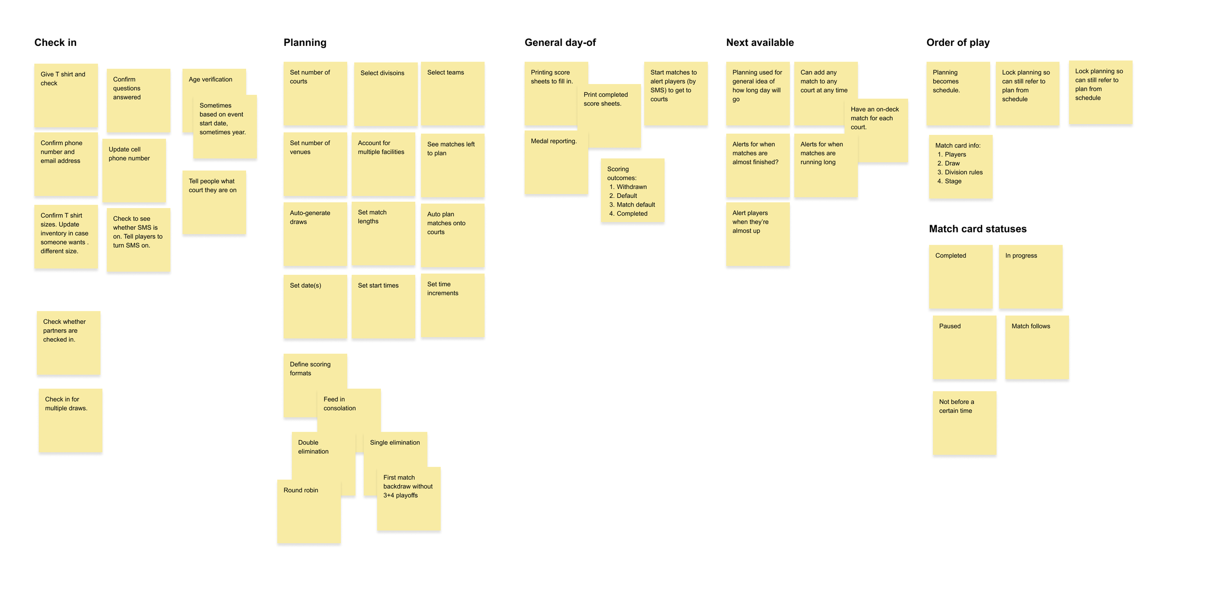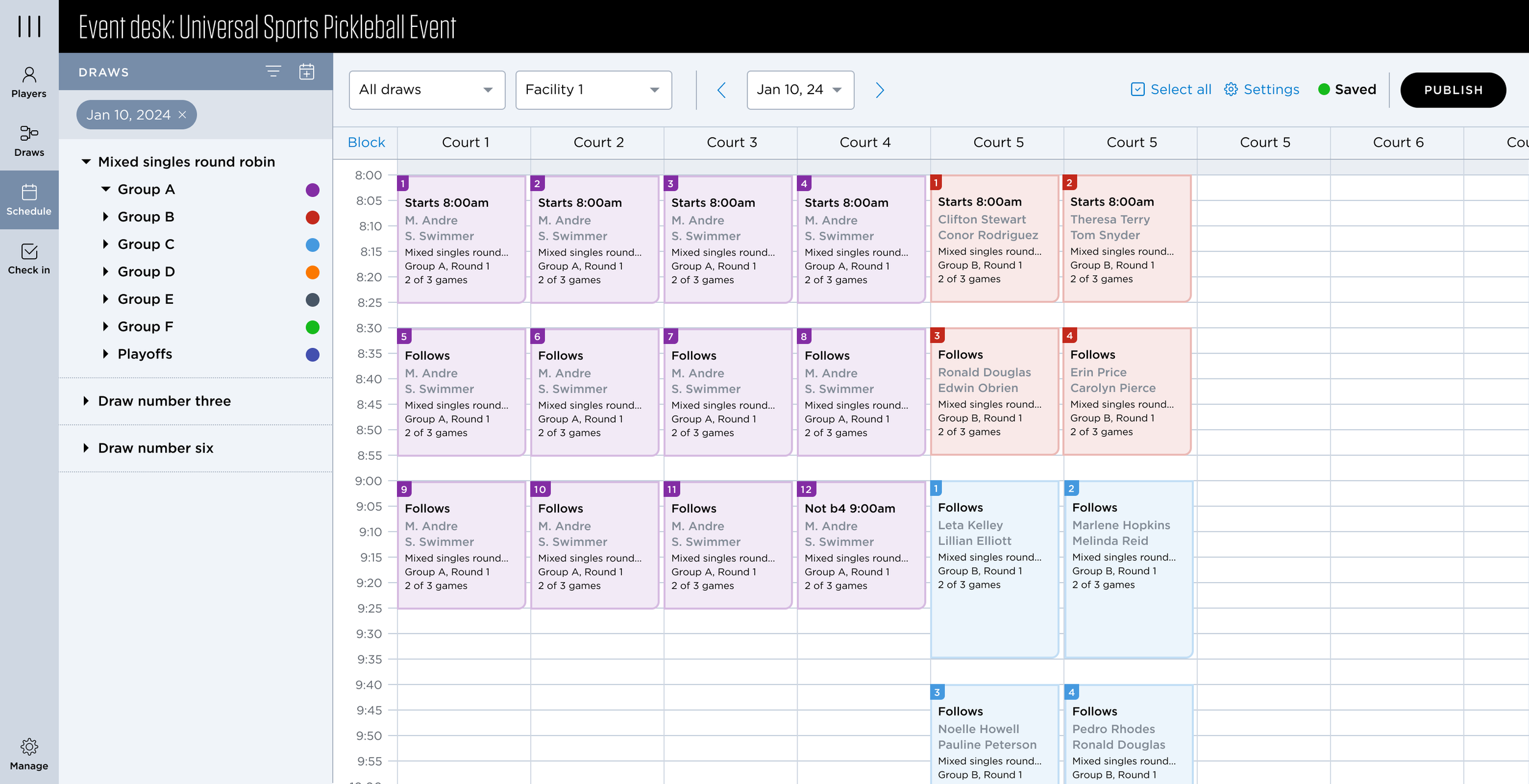 Partnerships were reached with the Association of Pickleball Players (APP), one of the largest pickleball organizations in the United States. However, in order for them to fully adopt the platform, they needed robust tournament scheduling tools in order to run their hundreds of players events.