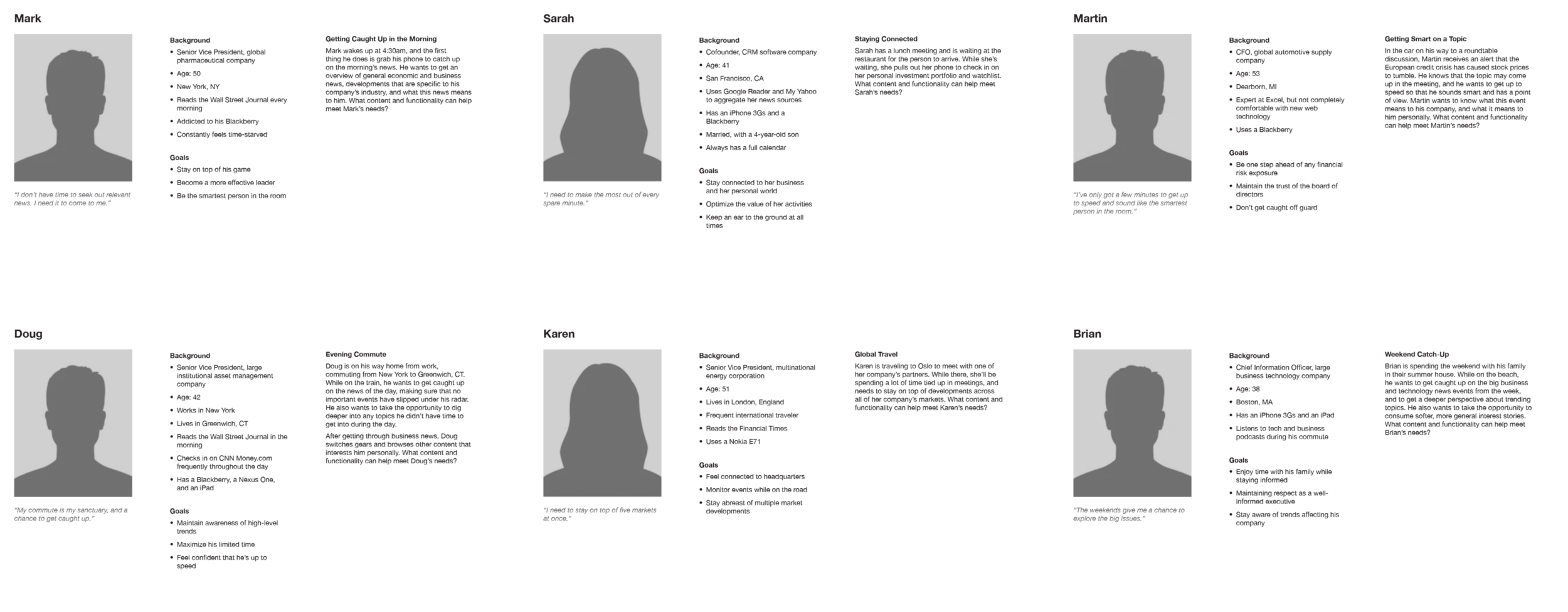 We began by synthesizing research that had been completed and developed user personas around the various audiences.