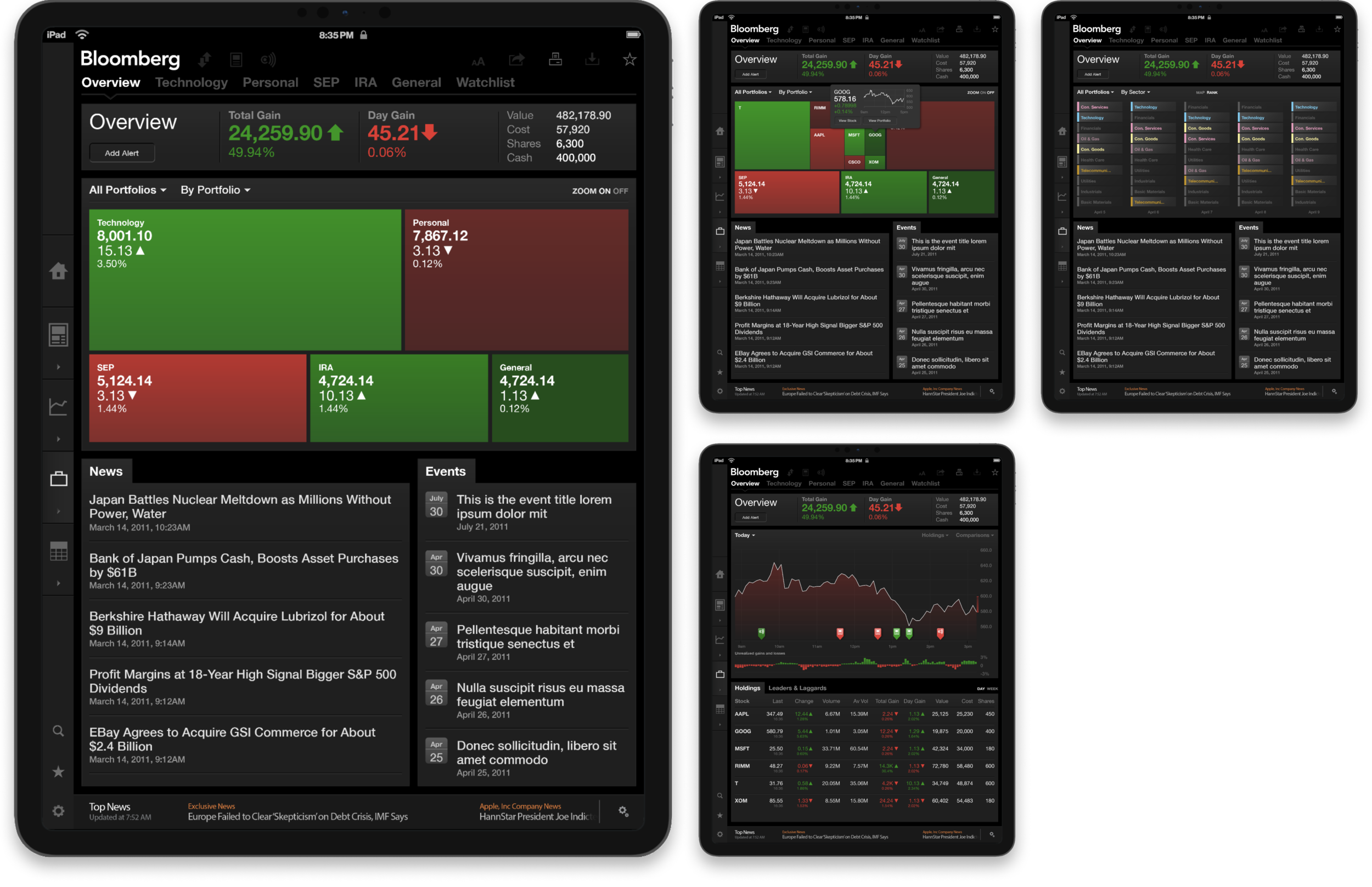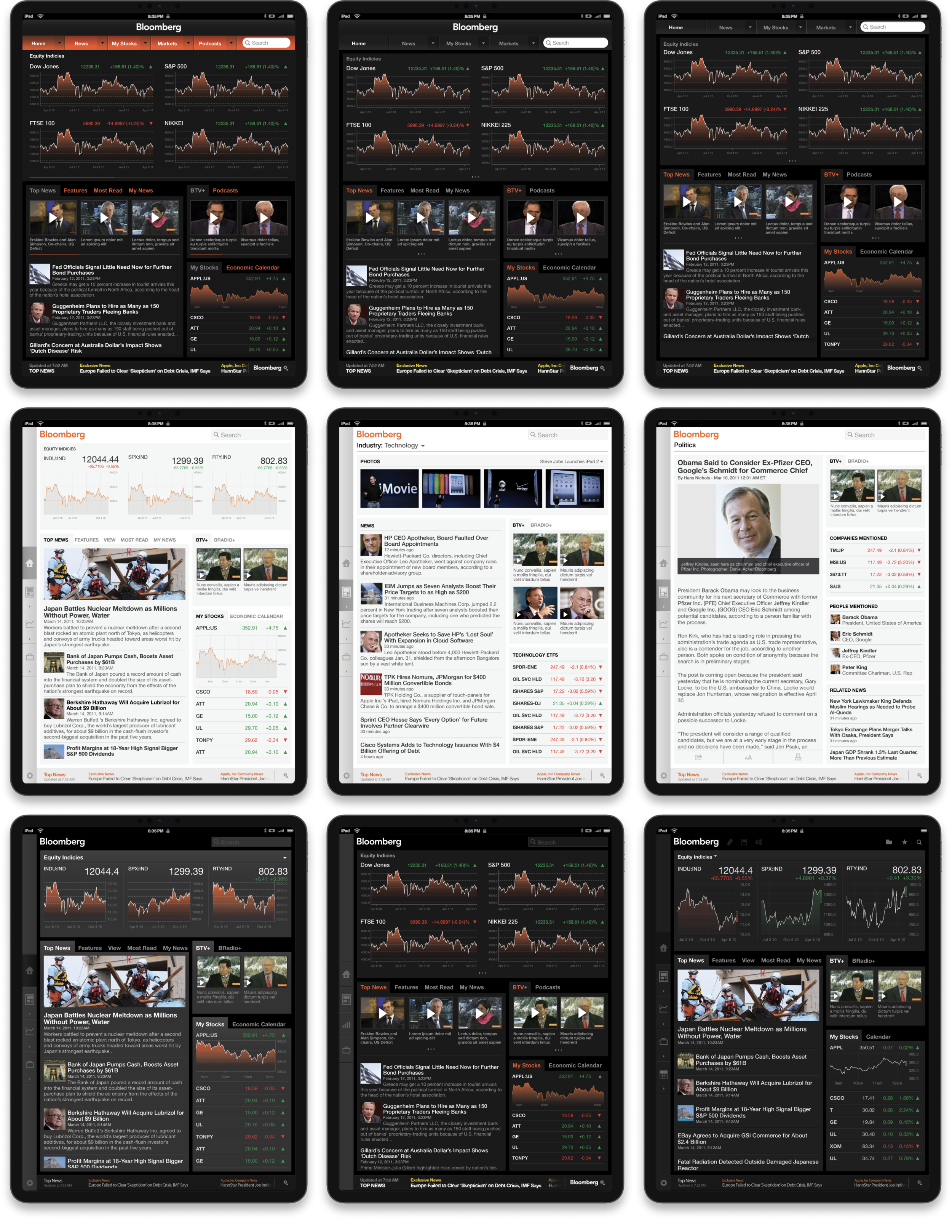 An updated iPad application that leverages the extensive news content of the Bloomberg platform along with depth of their market information.